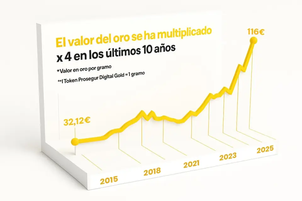 El oro ha sido durante siglos un refugio frente a la incertidumbre. Hoy, gracias a Prosegur Digital Gold, puedes acceder a este activo real de forma digital, segura y transparente. Invierte en oro respaldado por una de las compañías líderes mundiales en custodia de activos de alto valor.